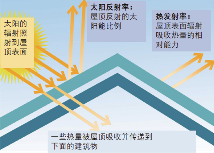 清涼屋面系統通常是白色或淺色的,是指通過提高屋面材料表面的太陽光反射比和熱輻射率,減少通過建筑物屋面進入屋內的太陽能量,使建筑物達到降溫效果。