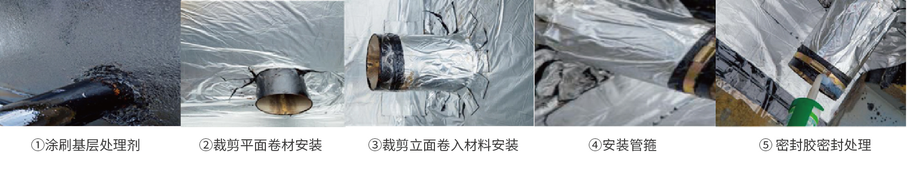 施工操作工藝: 準備施工主料和輔料——清理基層——涂刷基層處理劑——細部構(gòu)造增強處理(檢查施工質(zhì)量)——鋪貼大面卷材(檢查施工質(zhì)量)——卷材收頭?